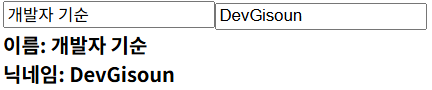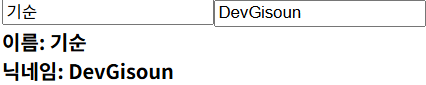 각각 ‘기순’, ‘DevGisoun’으로 초기화된 ‘input’과 텍스트